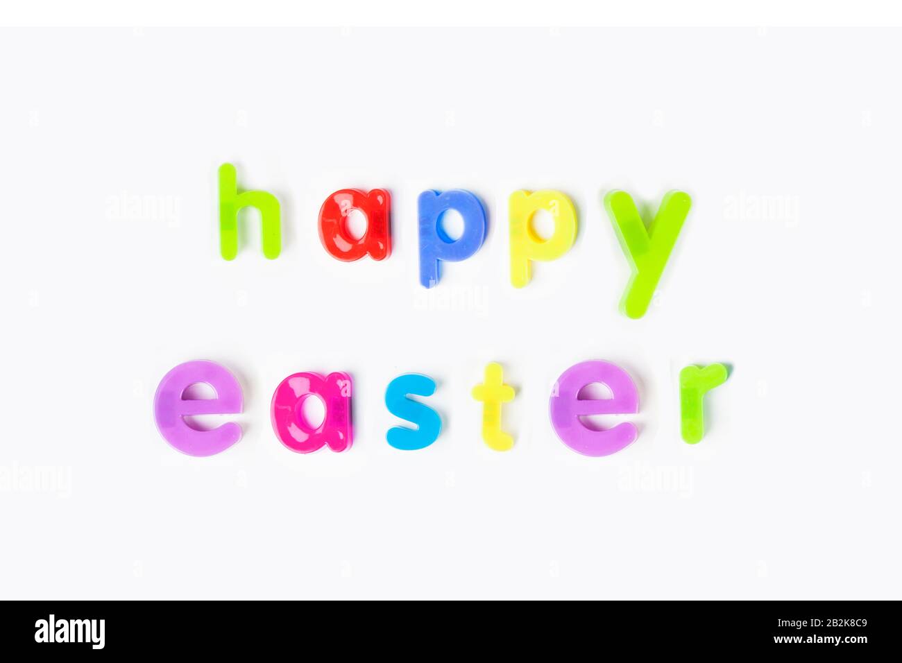 Colorful Alphabet Magnets Spell Happy Easter Over White Background Stock Photo Alamy
